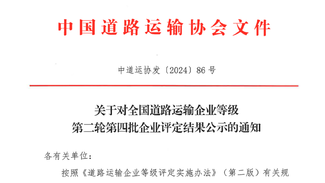 关于对全国道路运输企业等级第二轮第四批企业评定结果公示的通知